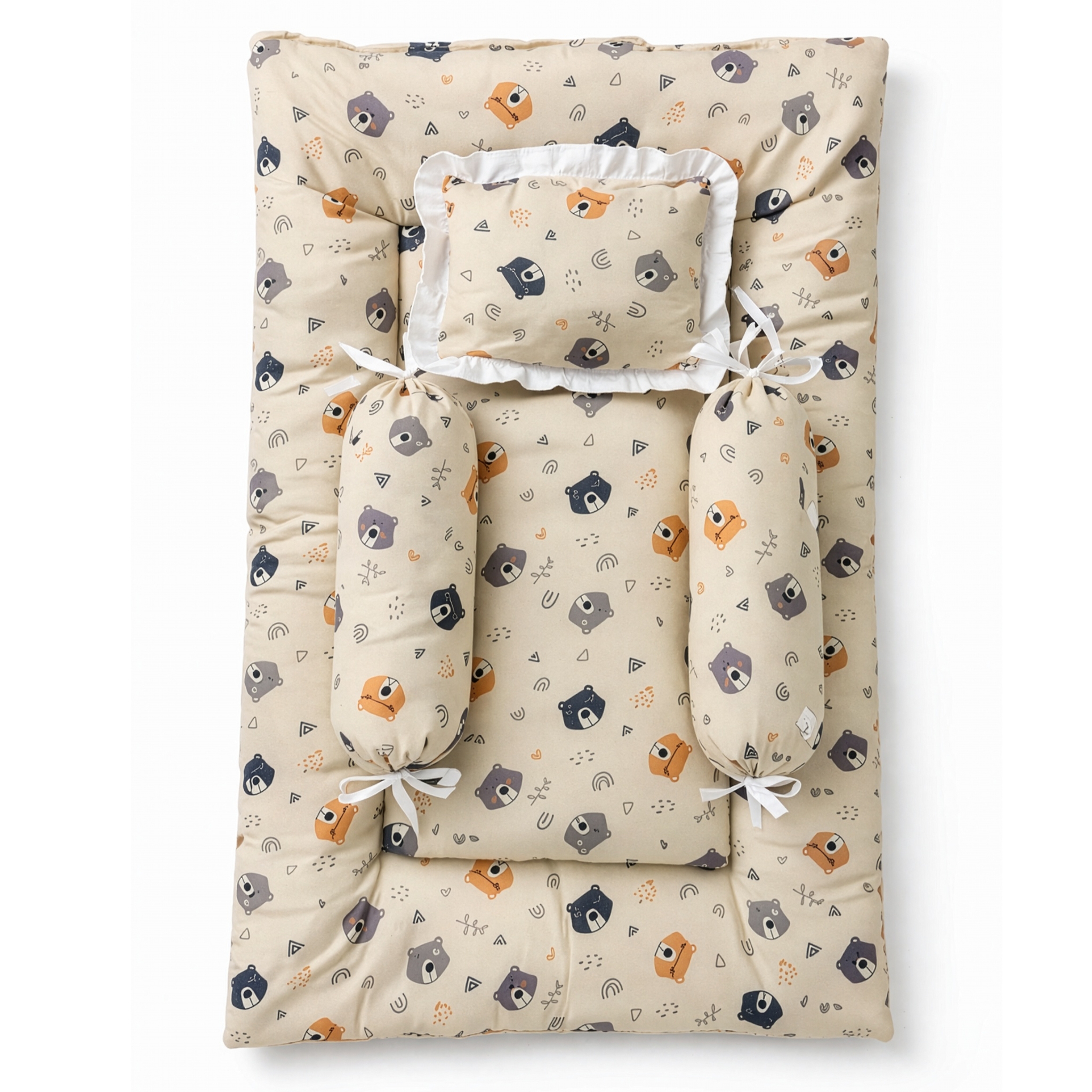 The adorable bear print adds a warm and playful touch, making the cotton mattress set baby bear both functional and aesthetically pleasing. Whether used in a crib, cradle, or on the floor, this bedding set adapts easily to your daily routine—perfect for sleep, rest, or playtime.