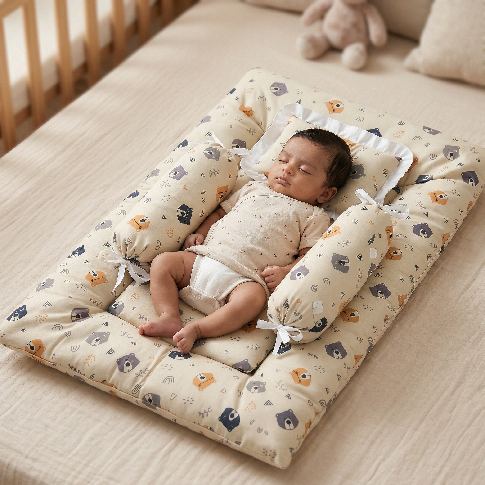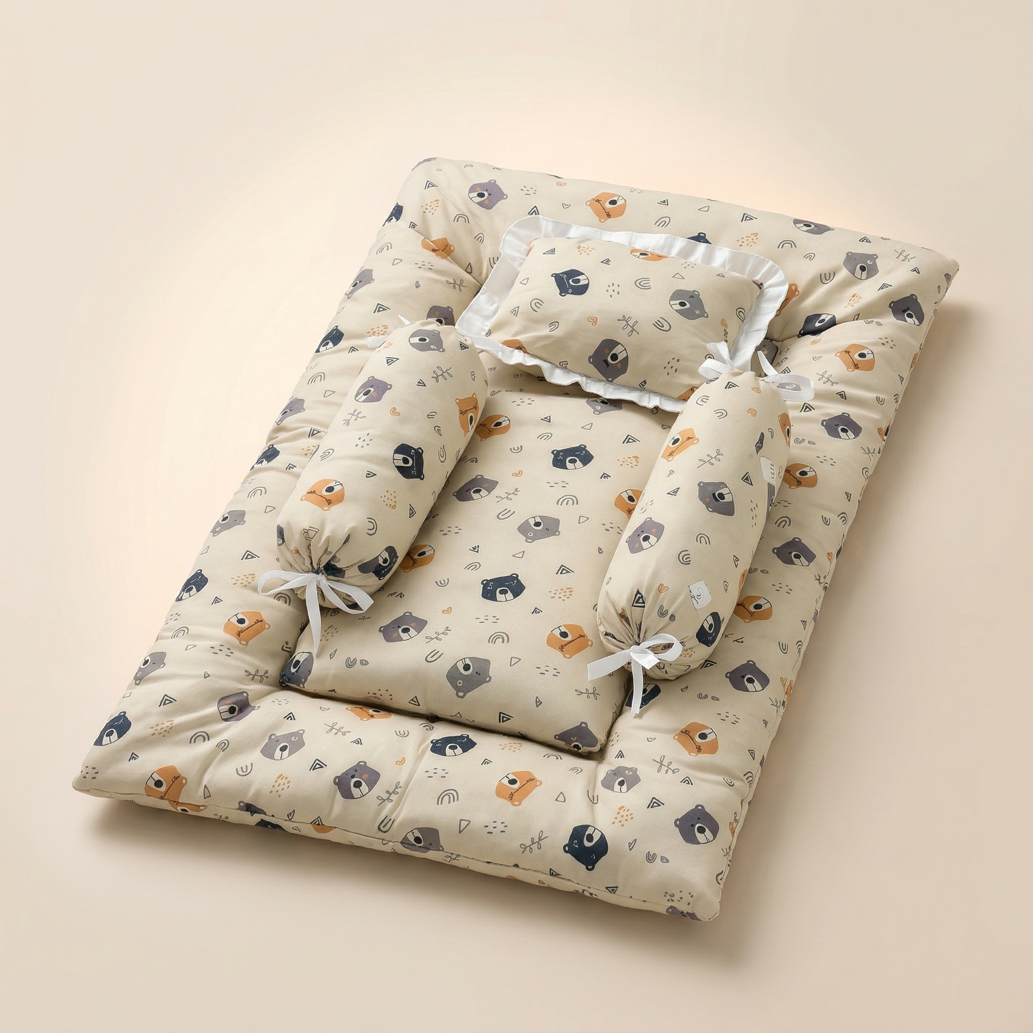 Cotton mattress set baby bear is thoughtfully designed to create a complete and comfortable bedding space for your newborn. Made for parents who value softness, safety, and everyday practicality, this mattress set offers a cozy and secure environment for restful sleep.
